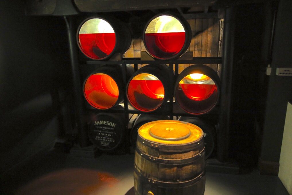 Dann die erste Gewissensfrage: Jameson oder Guinness? Ich habe mich dann doch für die alte Jameson Destillerie entschieden, die heute nur noch als Museum dient. Der Whiskey selbst kommt heute aus Midleton nahe Cork. Das Museum an sich ist sehr liebevoll eingerichtet, die Tour kam mir aber ziemlich gehetzt vor. Das war damals bei Glenfiddich in Schottland entspannter. Zur Verkostung gab es einen Jameson im Vergleich zu Johnny Walker (Scotch) und einem amerikanischen Whisky. Beide schlägt der Ire natürlich um Längen. 😀 Das Foto zeigt die Auswirkungen des Angel’s Share, also der Teil des Whiskeys, der beim Reifen verfliegt.