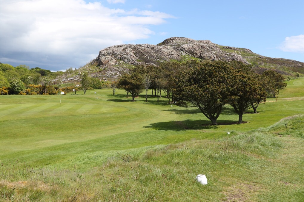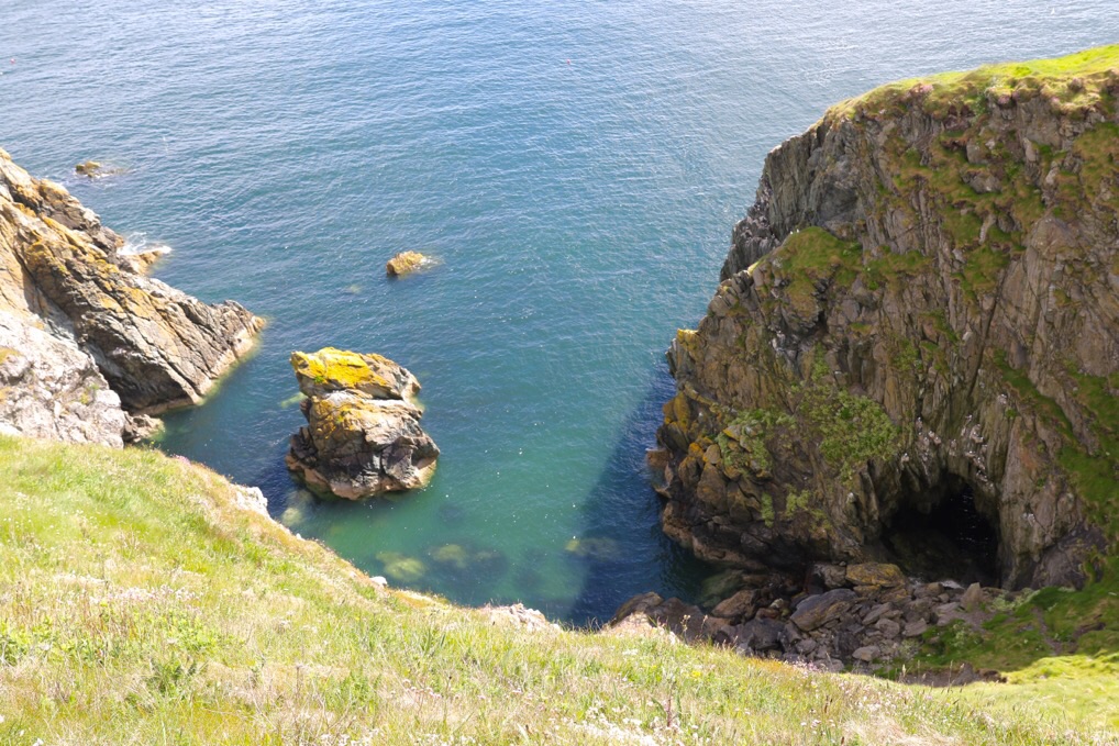 Und dann kam doch eine dunkle Wolke über den Hügel gezogen und es hat gegraupelt. Glücklicherweise nur 5-10 Minuten. Nach den Klippen ging es quer über die Insel mitten über einen Golfplatz.