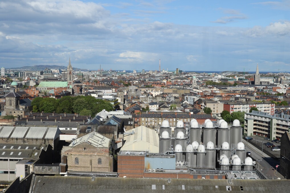 Nachdem noch reichlich Nachmittag übrig war, habe ich mich an die gestrige Gewissensfrage erinnert, da war doch noch was offen. Also ab in den Zug zurück nach Dublin und mit der Straßenbahn zum Guinness Storehouse, wo das Bier nicht nur hergestellt wird, sondern es auch ein siebenstöckiges Besucherzentrum gibt, wo man alles über Guinness in einer Self-guided Tour lernen kann, inklusive Verkostung, und wie man das Bier richtig trinkt, und einem Schnellkurs, wie man so ein Bierchen perfekt zapft. Natürlich ist ein Pint Guinness im Eintrittspreis enthalten, das ich in der obersten Etage in der Gravity Bar genossen habe, wo man eine geniale Aussicht über ganz Dublin hat. Ein perfekter Abschluss für den Tag.