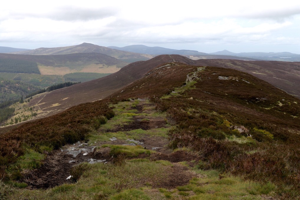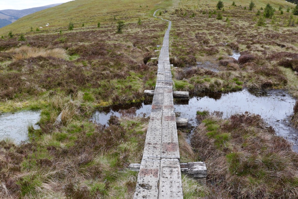 Der Grund, warum ich eigentlich hier her wollte, ist eine Wanderung. Sie führt an beiden Seen entlang zur einer alten, verlassenen Mine, dann steil hinauf auf einen Bergrücken namens The Spink. Und schon hat man seine Ruhe. 😀 Viele gehen von dort wieder zurück. Ich habe aber die Alternative gewählt und noch den Mullacor erklommen. Auf dem Weg dahin sind auch ein paar Hirsche über den Weg gesprungen und das ein oder andere Schaf stand am Wegesrand. Je näher man dem flachen Gipfel des Berges kam, desto sumpfiger und morastiger wurde es. Weiter gings dann noch zum Gipfel des mit dunklem Heidekraut bewachsenen Derrybawn. Und auf dem Rückweg ins Tal kommt man noch an den Pollanass Wasserfällen vorbei. Insgesamt 19,75 Kilometer, und alles ohne Regen. Der fing erst an, als ich in meinem Bed & Breakfast ankam, das ebenfalls in diesem schönen Tal liegt. Herrlich!
