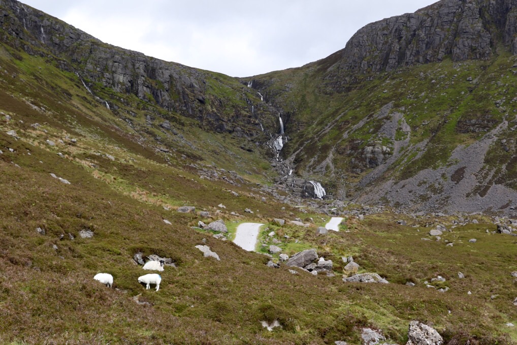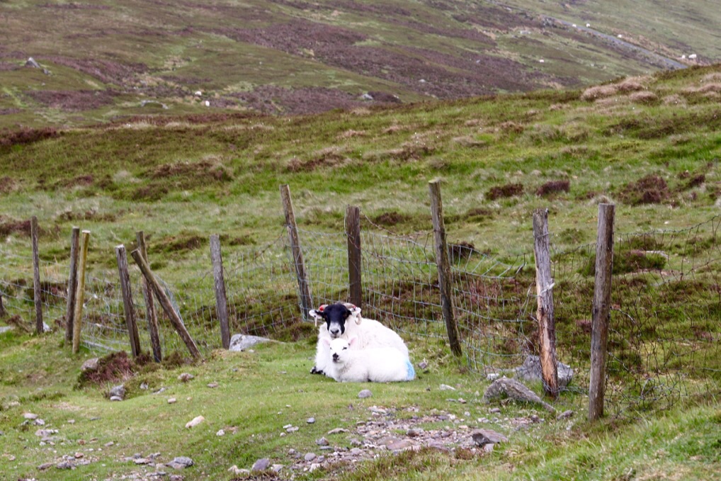 Danach überquert man den Mahon River direkt über dem Wasserfall, geht Richtung Gipfel des Comeraghmountain weiter, wo man nochmals einen tollen Blick hinüber zum Knockaunapeebra und ins Mahon Valley hat, bevor es hinunter zurück zum Parkplatz geht. Ständige Begleiter waren übrigens Schafe mit ihren Lämmern, die überall in den Bergen grasen. Extrem niedlich. ☺️