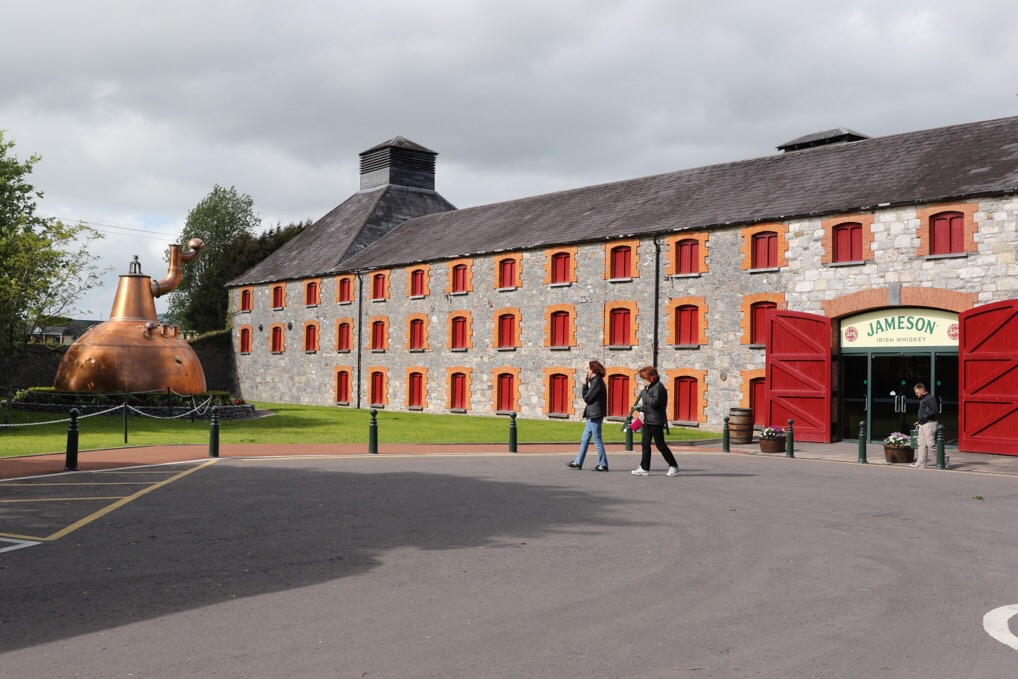 Nach der Wanderung hab ich mich auf den Weg nach Cork zu meinem nächsten B&B gemacht. Dabei kommt man auch durch das Städtchen Midleton, das einem mit einem riesigen Werbeschild für die Jameson Whiskey Experience begrüßt. In Dublin hatte ich gelernt, dass der Whiskey heute hier hergestellt wird. Also Blinker gesetzt und hingedüst. Für eine Tour war es zu spät, aber für ein Glas Jameson – Ginger Ale – Lime und einen Blick auf die Destillerie reichte es allemal. Dabei habe ich eine nette Familie aus den USA und ein Paar aus dem County Mayo in Irland kennengelernt. Wir haben uns so verquatscht, dass wir als letzte Gäste quasi hinausgekehrt wurden. 😀 Ein schöner Abschluss für einen tollen Tag.