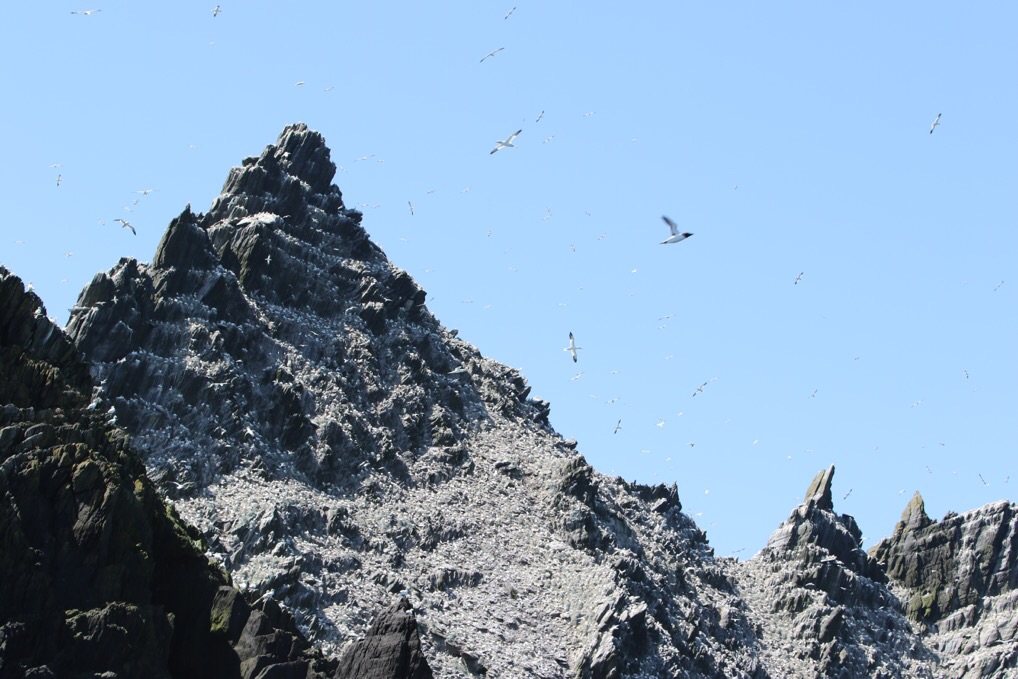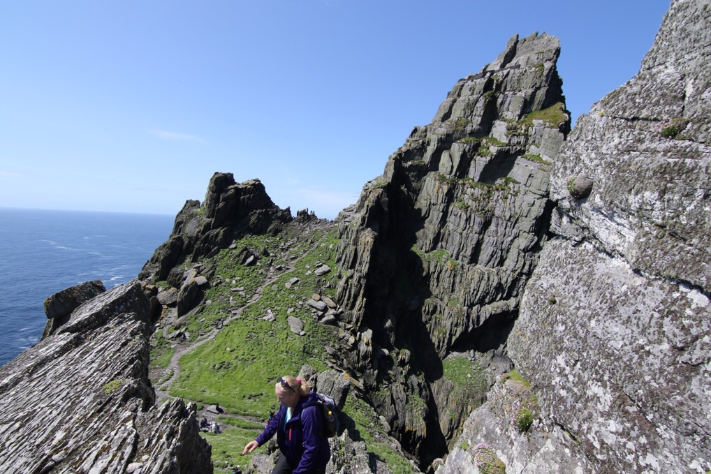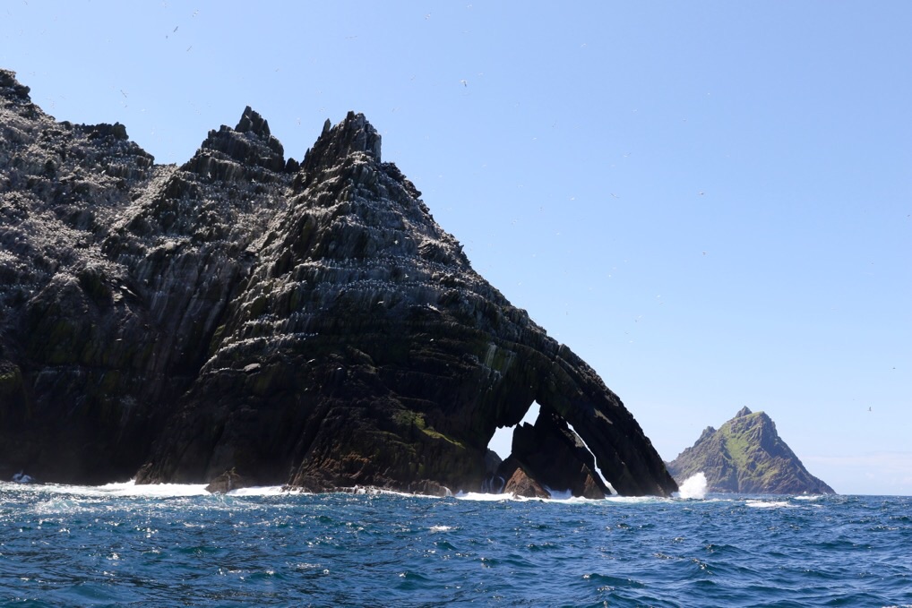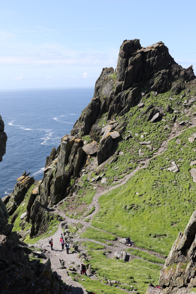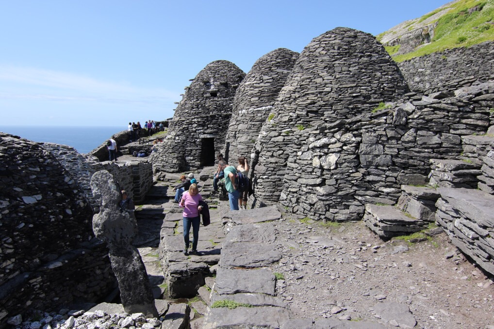 Die beiden Inseln haben schroffe Felsformationen und scheinen unwirklich, wie nicht von dieser Welt. Wohl auch ein Grund, warum J.J. Abrams hier Szenen für den neuen Star Wars Film gedreht hat. Gerüchten zufolge hat der alte Luke Skywalker hier eine Jedischule. Auf der größeren der beiden Inseln errichteten Mönche im 7. Jahrhundert auf der Spitze ein Kloster, wo sie zurückgezogen leben und studieren konnten. Sie weihten die Insel St. Michael. Ihre Behausungen waren steinerne Bienenkorbhüttten, die komplett ohne Mörtel errichtet wurden und noch heute stehen. Wikinger überfielen das Kloster im 9. Jahrhundert und im 13. Jahrhundert gaben die Mönche das Kloster auf.