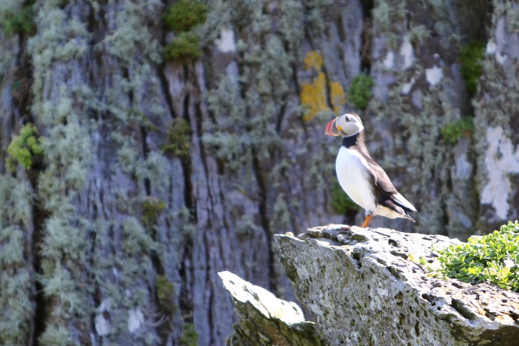 Zu dem Kloster zu gelangen ist ein kleines Abenteuer. Das Boot schwankt über einen Meter auf und ab und man muss den richtigen Moment erwischen, um die Stufen an Land zu erwischen. Dann führen ca. 600 steile Stufen hinauf. Auf den Wiesen neben der Treppe brüten viele Papageientaucher, oder Puffins, wie sie auf Englisch heißen, und was viel niedlicher klingt, denn die sind ja sooo knuffig.