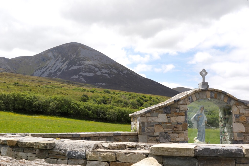 Weiter ging es über den Doo Lough Pass zum bekanntesten Berg Irlands, dem Croagh Patrick, der gleichzeitig ein Heiligtum ist. 441 soll St. Patrick 40 Tage und Nächte auf dem Berg verbracht haben, um zu der Erkenntnis zu gelangen, ganz Irland zum Christentum zu bekehren. Damit ist der Berg eine Pilgerstätte, sodass es auf dem Gipfel sogar eine Kapelle gibt. Selbstredend dass an einem sonnigen Sonntag wie heute die Massen nur so hinauf strömen. Ich habe den Berg nur von unten bewundert und einen Earl Grey getrunken, meine Füße danken es mir.