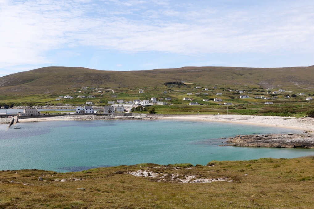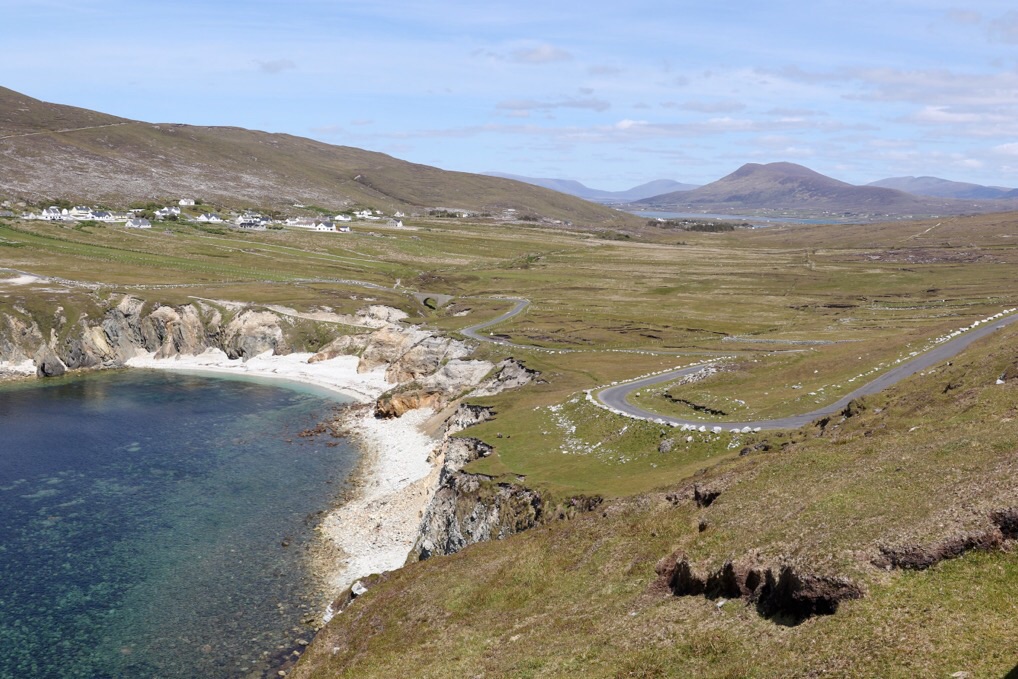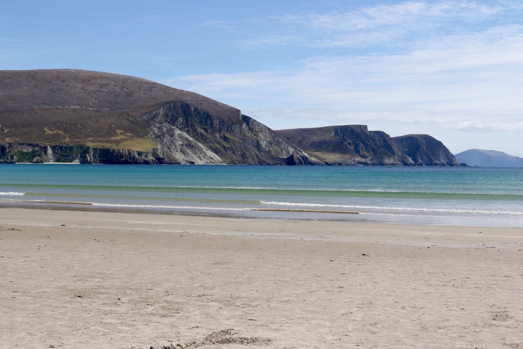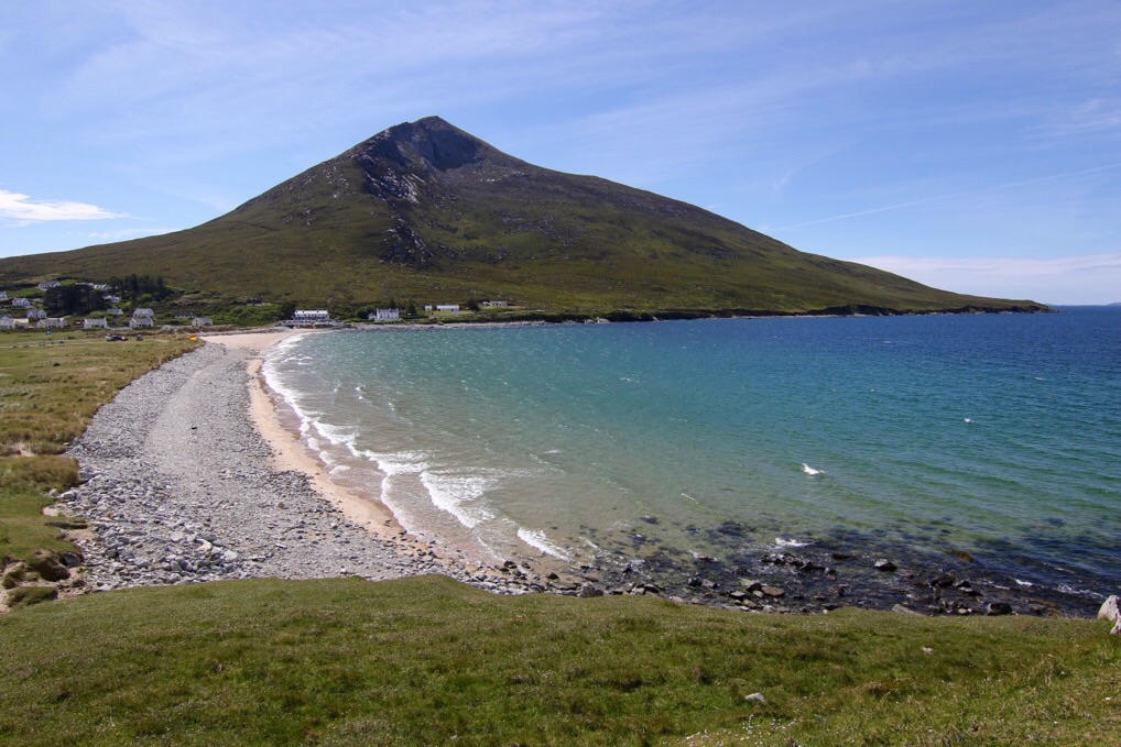 Mein Weg führte mich weiter nach Nordwesten zur Achill Island. Die Insel liegt so nah am Festland, dass eine kleine Brücke hinüberführt. Rund um die Insel führt der Atlantic Drive, der nun zum Wild Atlantic Way gehört. Von hier sieht man wieder beeindruckende Klippen, türkisblaues Meer, Sandstrände, Berge und den Rhododendron. Ein einzigartiges Idyll.